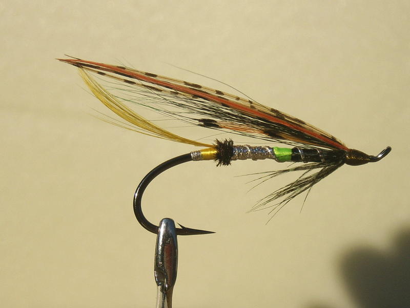 Tässäpä perho jota on koeuittaneet sekä rantamiehet, että soutajat ja hyvin tuloksin. Rantamiehille ne muutamat Jaskan kaipaamat kf:n lisäsiikaset on paikallaan, mutta ei soutuperhoon. Seuraavat pari vuotta näyttää iskettiinkö ns. kultasuoneen, elkeet on hyvät. 1:n koukku oli paras, johtuneeko siitä että joessa oli vettä enemmän kuin normaalisti, silti tapahtumia oli 4:n Double Wilsonillakin. Perhosta tein joitakin malleja myöskin sinisillä macaw sarvilla, mutta ei toiminut. Noita sarvia on hiukan kritisoitu sen takia, että ne helposti katkeilee heitettäessä ja kalan suussa, mutta katkenneen tilalle on aika helppo hitsailla aina uudet, sillä näyttää että ne kuuluvat tähän perhoon.