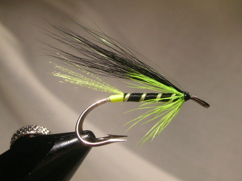 Ei ole kuin muutama viikko kun sidoin vastaavan perhon. Perä oli minulla fluori vihreä ja hopean vieressä sama fluori vihreä kierteenä. Tässä erittäin mallikasta sidontaa ja varsin toimivahan tuo värimaailma on ollut kaikilla lohijoilla mitä on kuullut ja saalistilastoja selannut. Hieno perho. Ja sidonta mennyt valtavasti eteenpäin.