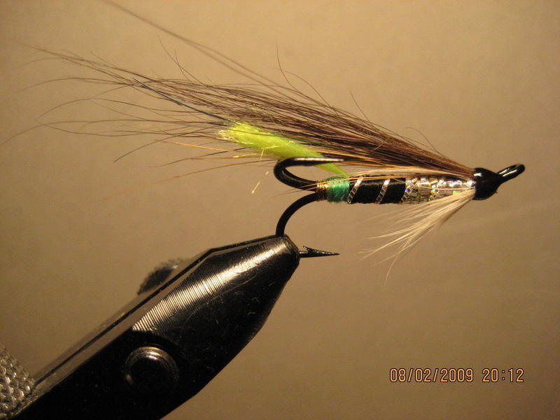 Rimpauttajan muunnoshan siinä jököttää ja miksipä sillä ei kalaa tulisi.Nyt moni sanoo,että on turhan pitkä siipi heittoperhoon,menee herkästi koukun mutkan ympärille.Niin minäkin jos kolmihaaraiseen tekee,mutta esim.tupla-tai sinkkukoukkuun ei haittaa vaikka pitemmänkin.Ei ainakaan omassa kalastuksessa kun vain välillä pikaisesti tarkistaa,että siipi pelittää.Normiperho lohen ongintaan,samaa mieltä lienee veden alainen katsastusasema