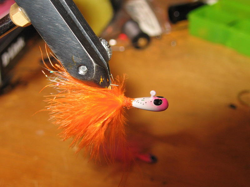Yleensä noissa jigityylisissä päissä on toi silmukka mennyt umpeen maalista,koska ne vaan käytetään maalissa.Itse olen aukaissut ne toisen perhon tai uistimen koukulla.Hieno perho ja varmasti kalaa tulee.Hyvä!