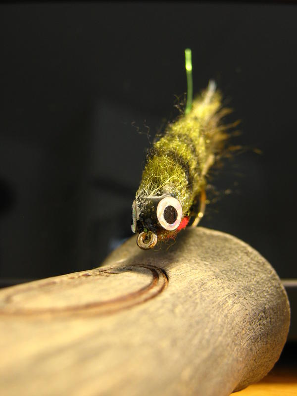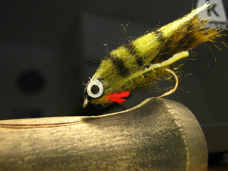 Söpö pikku ahven. Pikaliima poltti vähän antronia päästä, mutta sehän ei menoa haittaa. (Perhoon otettu vaikutteita juhahujasen ahvenista)
