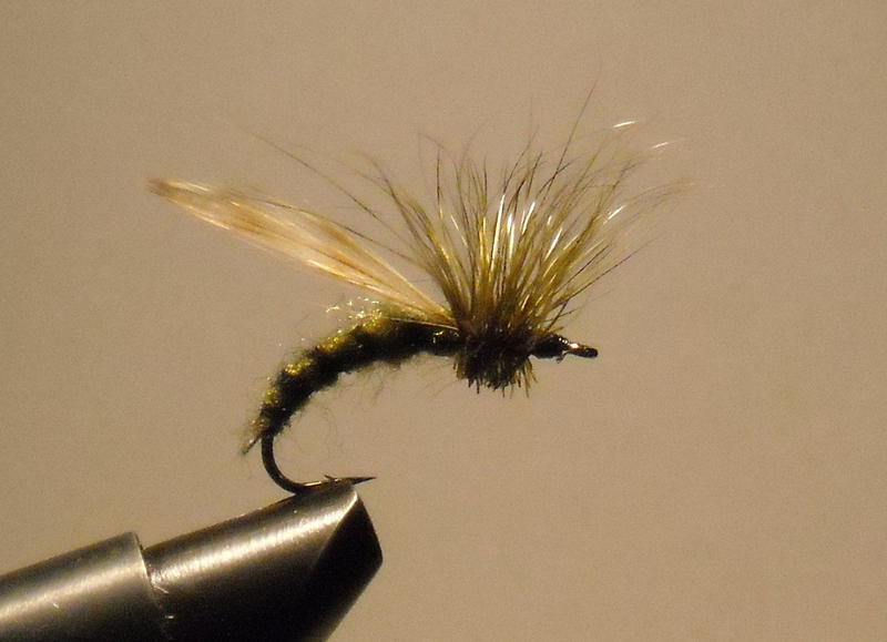 Hyvän näköinen jph. Erälehdessä oli tämä perho ja minäkin sitaisin näitä 16 koukkuun ja 14 koukkuun ja kalaa on antanut. 2 taimenta ja joku 10 ahventa ja särkeä. musta ja olivvi toimii väreinä.