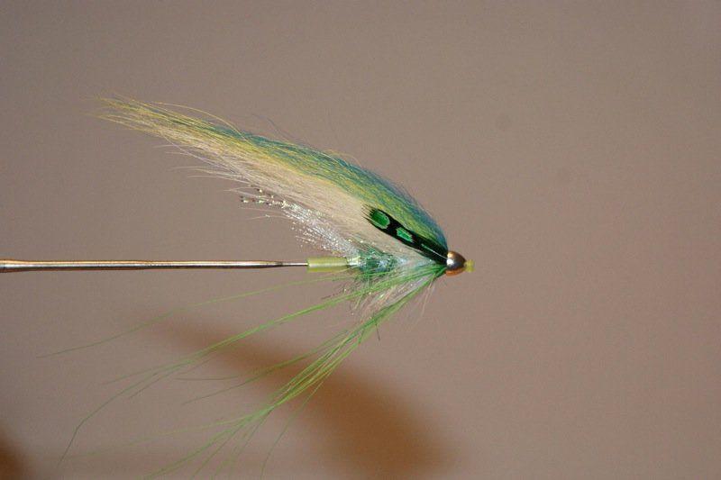 Alempi on tehty Salarin 3 koukkuun ja pää on chartreusen värinen.