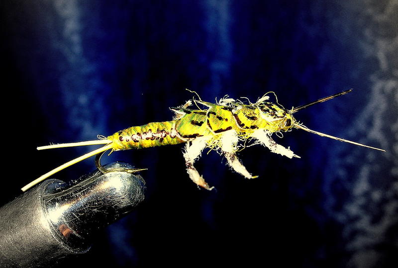 Itse olen viritellyt saman tyyppisiä matoja viimeaikoina lähinnä sidontaharjoituksena. Vinkki: leikkaa thinskinistä ohut suikale ja tussaa suikaleen etureuna mustalla ta ruskella tussilla ennen kiertämistä, niin saat nymffiisi luonnollisen näköiset jaokkeet/kuvioinnit, jotka kestävät.