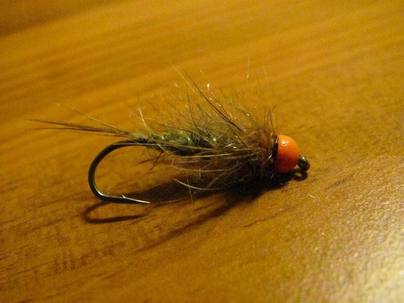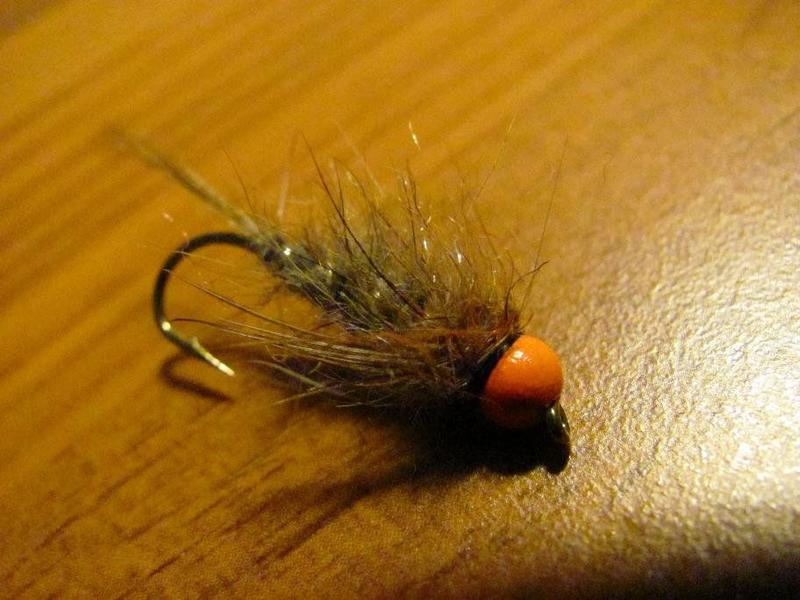 Taimenelle ja harjukselle kelpaa epäilemättä. Vastaava nymfi, koko mustana tai riikinkukko rungolla ja juurikin oranssilla päällä on hallaa kirjolohille. Kierre helmiäinen tai hopea ja hitaaseen virtaan cdc häkilää ja kyllä röytää.