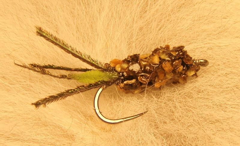 Ei toimi älytön painotus TÄSSÄ mallissa. Nimittäin silloin tulee myös aivan älytön runko (nuo kiteet rungossa ovat suht isoja). Mulla perhot menee mustikoilla pohjaan ja siihen tämä toimii. Lyijyä on rungossa lähinnä ettei jää liian laihaksi. Jos haluaa mennä pohjaan pelkillä perhojen painolla, niin suosittelen jotain 0.35 lyijylankaa kierrettäväksi ja siihen päälle sitten hiekka tällaisissa kopissa. Mallia vaikka tuosta: http://perhorasia.fi/Fly/Fly.thtml?flyID=11894