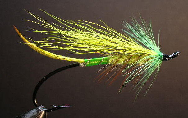 Tuo vihreä kukko on ns kaulushäkilä, se oli kyllä ihan tavallinen perhoissa 1800-luvulla, sitä vaan harvemmin näkee enään perhoihin sidottavan. Melko usein kaulushäkilä sidottiin perhoihin joissa oli kurkussa auki-nypittynä pitkää sianvillaa tai mohair-kuituja.
