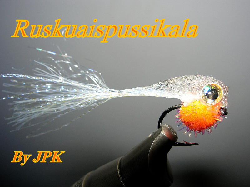 Vaikka lupasin viimeksi että "viimeinen" epoksi perho niin yksi on vielä laitettava! Tälläinen mätipussukka-pikkukala luulisi petokaloille kelpaavan. Ja jos silmätkin tottuisivat näihin epoksiperhoihin... ;)