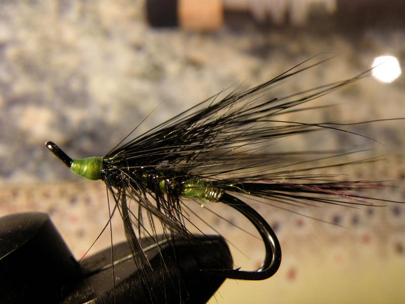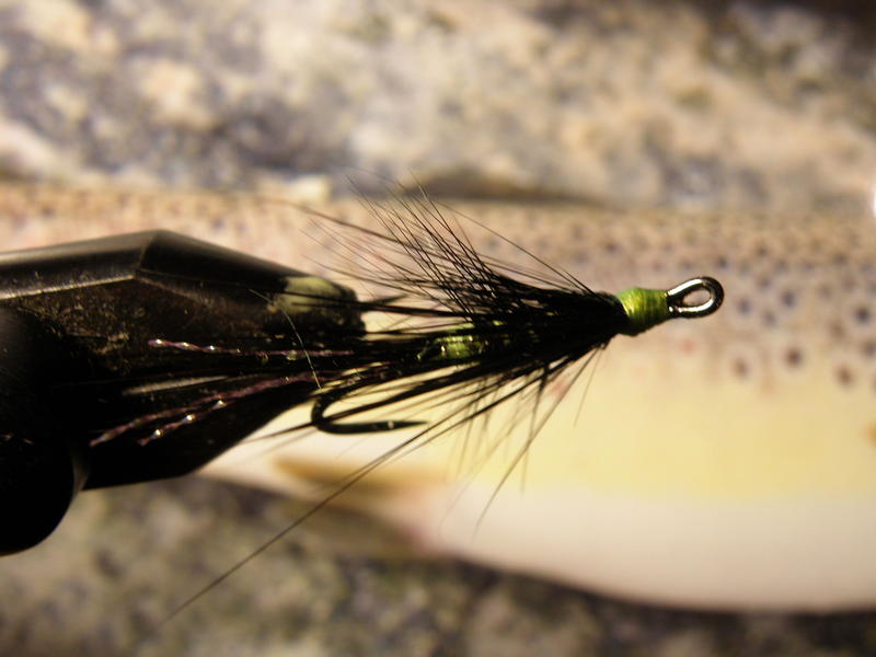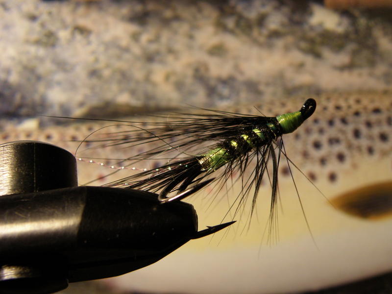 Tuo Musta Jaska osoitti minulle sen minkä moni muukin sitoja on usein kohdannut.Omasta mielestäni kehittelin ottavan sarvijaakon joka on musta kokonaan meloja myöten.Kierre fl.keltainen villa ja kulta.Ei mennyt kauan kun Jaskan kuva komeili alan lehdessä eli Mellasella oli ollut saman tyylin aatokset.Omani on antanut tittejä ja miksipä Jaskasi ei tekisi vähintään samoin.Nätti perho ja tuo koukku on tosi terävä.Joskus vain on mietityttänyt miten se kestää kun runkoa ei ole juotettu.Käyttäjien mukaan ei ole ollut ongelmia,mutta silti vähän arvelluttaa jos vain toinen sakara on kalan suupielessä ja joutuu kovaan sivuttaisvetoon.Nöh..tämä jorina nyt on sitä teoretisointia jolle ei kannata paljon antaa painoarvoa koska käytäntö on osoittanut toisin.Uskon,että voit tarjota perhoasi lohille luottavaisin mielin.Oma versioni on pelannut vähän kaikenlaisissa olosuhteissa.Sateella en ole testannut.Chartreuse on monen lohen mielestä mainio väri