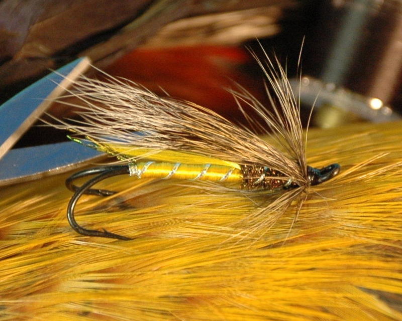 muistelen että Rustyssä oli alunperin vaalea oliivi takaosa, mutta keltanen toimii varmasti kans, etuosaan vois kokeilla Ice Dub/peacock black. hyvin toimii Målselvalla tämä perho.