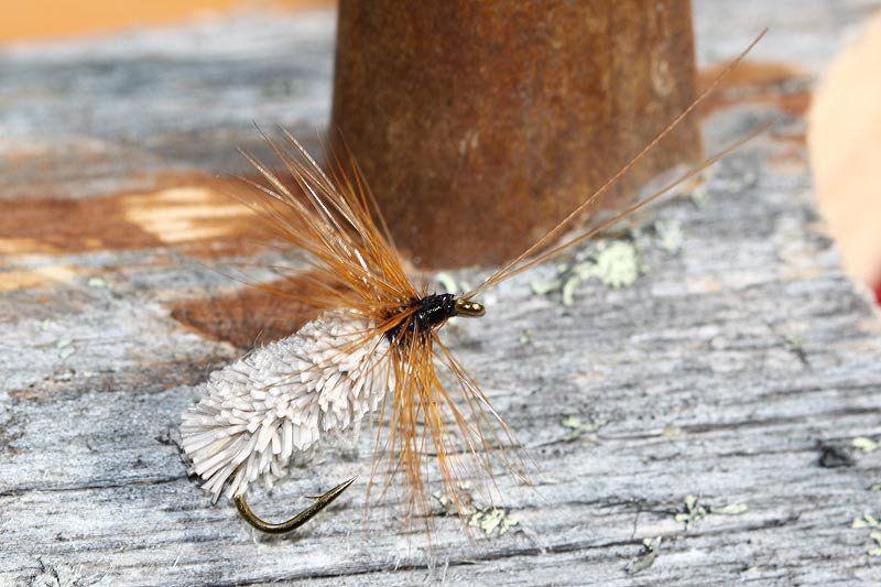 Siistiä sidontajälkeä. Ja hyvä kuva, vaikka onkin vaalea perho vaalealla pohjalla. Jos nyt jotain tästä parantaisi, voisi laittaa lisää tavaraa runkoon, eli enemmän peuraa. Laskuvarjohäkilä sopii tähän perhoon kuin bensa kokkoon.