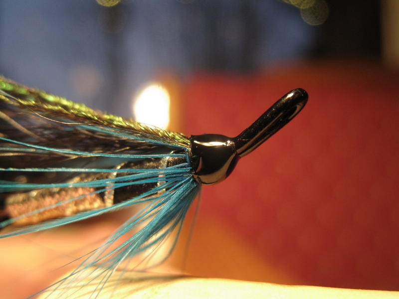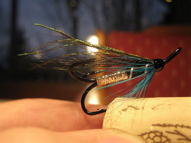 Nätti perho! Tykkään kovasti. Jonkinlaine pyrstö ois ollu kiva, niiku vyökin. Jotenki tästä tulee rungon ja värimaaliman takia mieleen perho nimeltä Mar Lodge ( http://perhorasia.fi/Fly/Fly.thtml?flyID=17536 ) Menisi varmaan muunnoksesta. Päätä vielä vähän pienemmäksi, ja tulis mun mielestä nätimpi jos käyttäsit siipeen parempilaatusia herlejä. Mutta nää on näitä ihmissilmän asioita, joista kalas tuskin paljoa välittää, eiku vethen vhain!