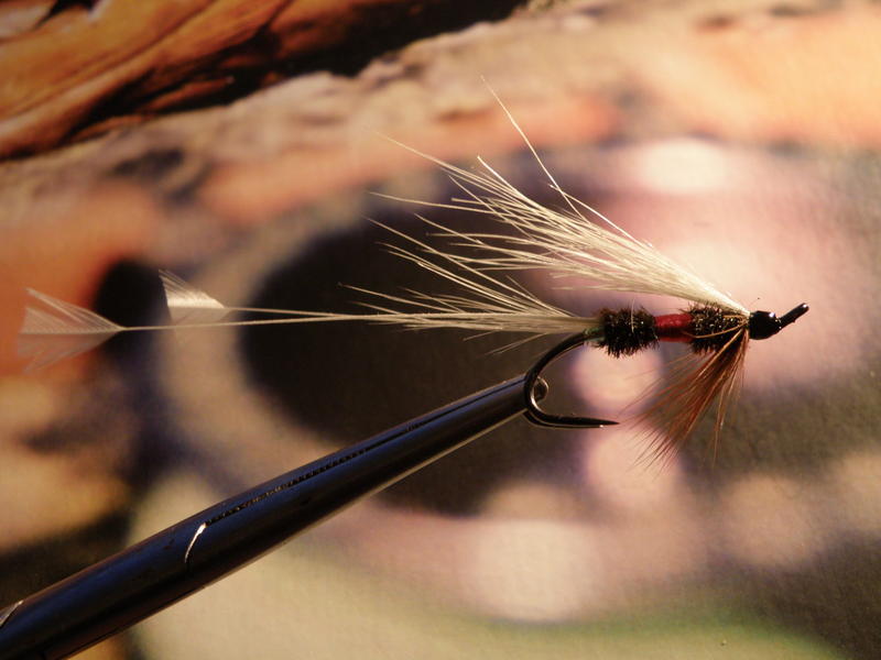 Joo,sidontahan on suhteellisen moitteettoman oloista,mitä nyt pikku epätasasuus keskipalkissa.Mutta,mutta...Itselle hiipii ajatus,onko kahden toimivaksi todetun perhomallin risteytys kovinkaan järkevää?Lähinnä siis tarkoitan sitä,että kun Royal Coachman on itsessään jo toimiva peli,kuten myös muuan sarvijaakko,niin mitä lisä hyötyä on sitoa Coachman Sarvijaakon tapaan?