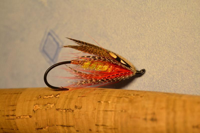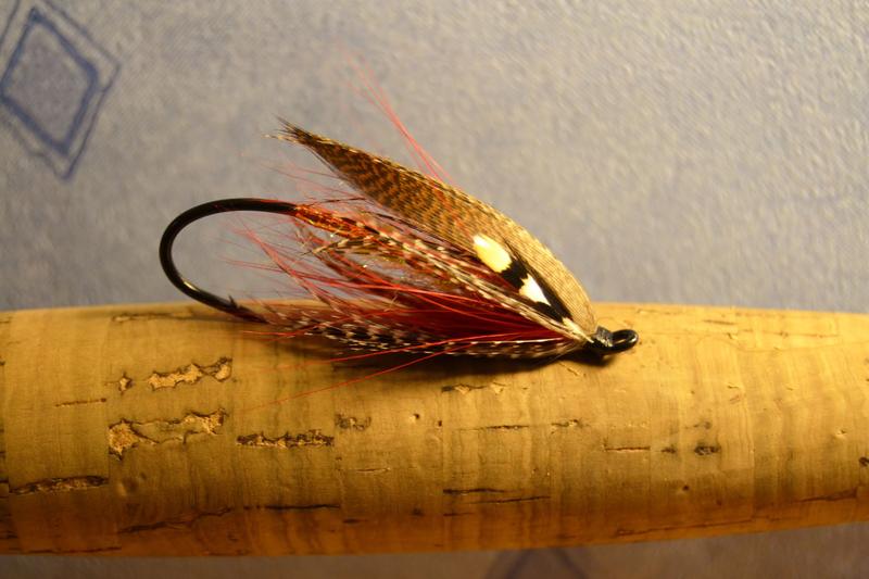 Erittäin näpsäkän oloinen perho mittasuhteiltaan. Itse olisin ehkä tehnyt punaisesta kukosta runkohäkilän, saisi peräpäähänkin jotain liikettä eikä olisi tuo kurkun seutu niin tukossa. Näissä spey-sidoksissa kun elävyys on se pääasia, hitaan virran perhoista kun on kyse.