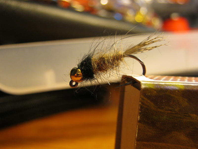 Yksinkertainen ottinymfi paikkaan kuin paikkaan. Yksi parhaiten toimineista perhoistani. Näitä on aina parikymmentä kappaletta kalareissuilla mukana.