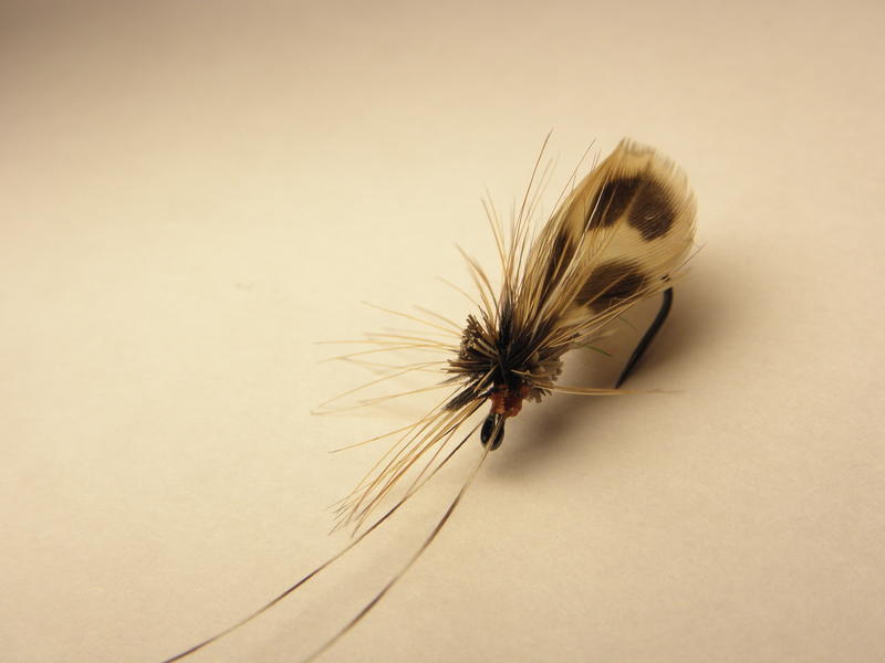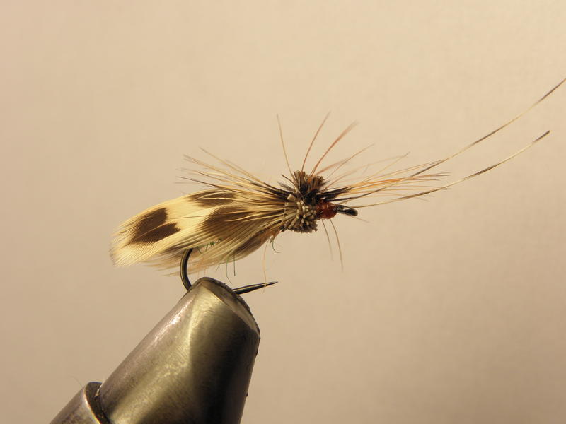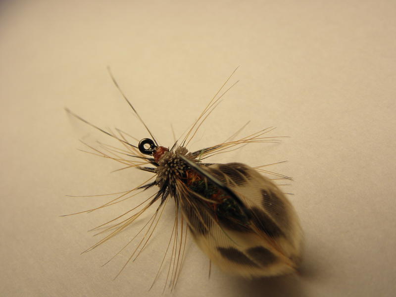 Myönnän, olet aivan oikeassa. Reseptin mukaan tässä perhossa pää sidotaan kuten olet sanonut; tai sitä ei oikeastaan ole enempää kuin muddlerpäissä yleensäkään, koska muddler -tekniikalla sidottu rintakehä jatkuu aivan koukun silmään asti. Lisäksi laskuvarjohäkilä on sidottu aivan eteen, joten päälle ei tilaa näyttäisi jäävän kuin normaalin päättelyn verran.