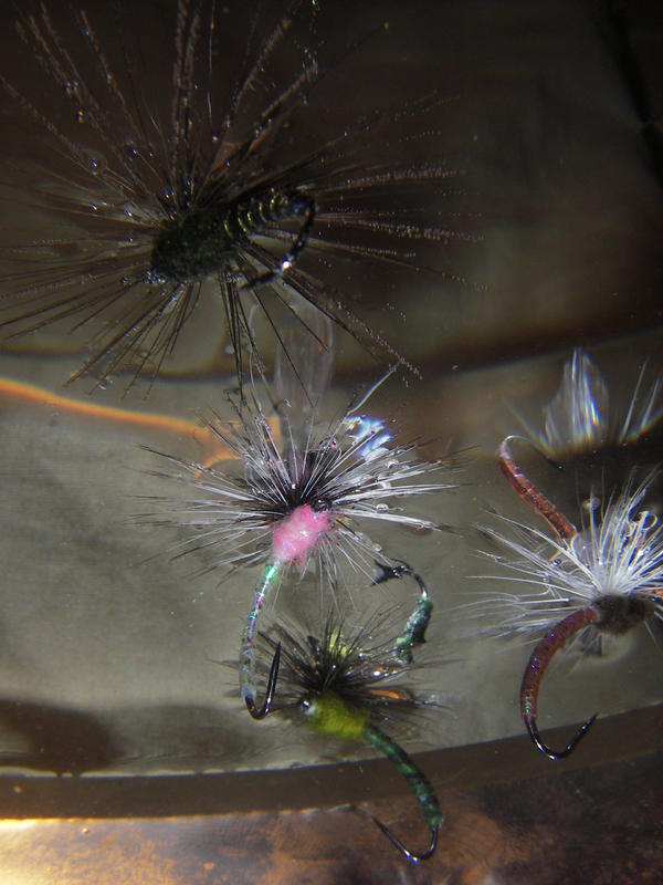 Itse perhosta en ehkä lähtisi lisäämään painoa kartioimalla runkoa yläpäästä painavalla "kumminauhalla" mutta ehkä thoraxin voisi aloittaa hieman taaempaa ja tehdä tuo kartiointi sitten tuolla tuolla dubbingilla. Kuvissa klinkit roikkuvat vedessä ilman mitään kellutus ainetta joten jos tuohon häkilään ja thoraxiin sipasee jotakin mönjää roikkuupi klinkki silloin hieman ylempänä . Itse käytän kalastaessa näissä nano silikoonia.