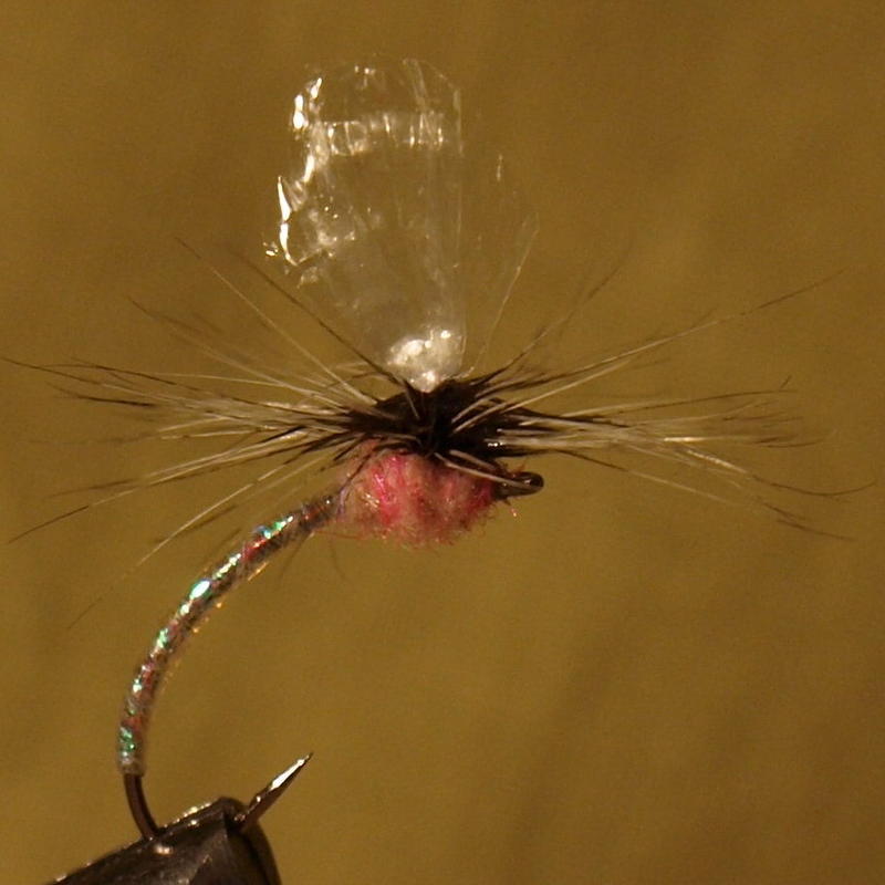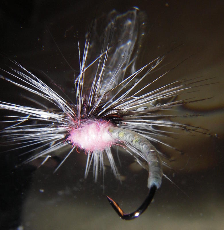 Onpa upean innovatiivisia sidoksia! Häkilöinnit täysi kymppi. Siipi mainio oivallus edellyttäen, että pysyy tositoimissa ryhdissään. Vielä jos saisi valkoisena tai vaikkapa punaisena tahi oranssina. Epäilen tuon kirkkaan erottuvuutta kosken kuohuissa. Sehän oikeastaan on klinkin siiven ainoa funktio ellei nyt puhuta häkilöintirungosta. Onhan tuo Larva Lece hot-pinkki jotakin pinturimateriaalia? Onko mustarunkoisen version thorax riikinkukon herliä; sekään ei mielestäni näitä pilaisi.