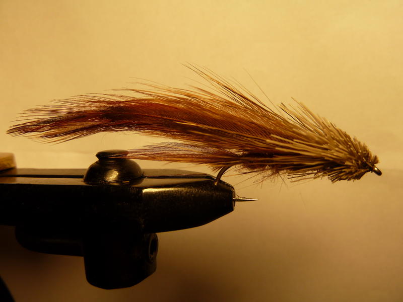 Tälläinen perho löytyi erälehdestä. Hieman muunneltuna tein, koska ei ollut bucktailia. Ja pienempään kokoon kuin alkuperäinen.