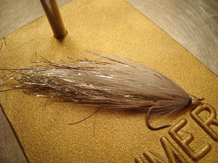 7. tee toinen siipi: Samalla tavalla tavalla kuin ensimmäinen. Pyri tekemään pikkukalamainen profiili. valkea bucktail auttaa tässä. Muista käyttää taas lakkaa tai liimaa.