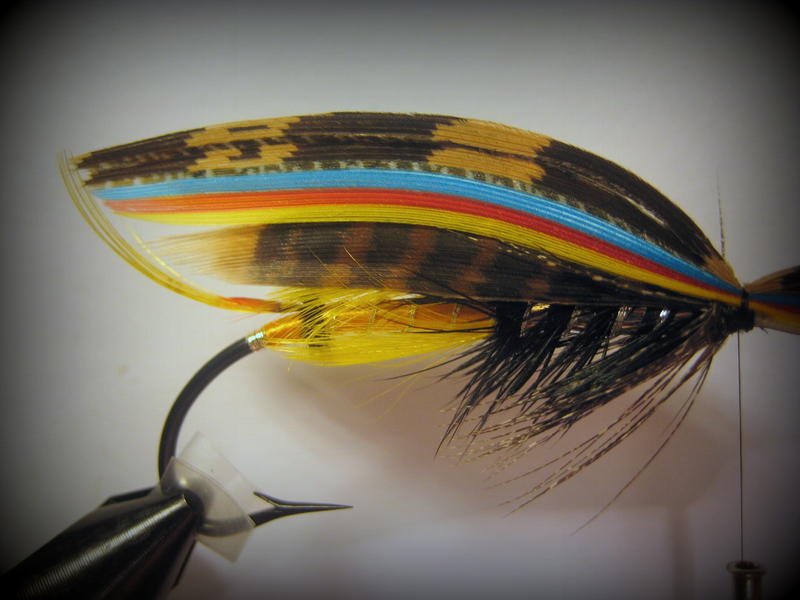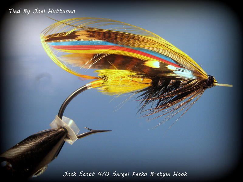 Kaunis resepti tuo Jock Scott.Oli pakko kokeilla sitä posket on aika kattolaskuisesti koska siipikin on vähän kattolaskuinen mutta kaikin puolin omasta mielestä onnistunut perho.