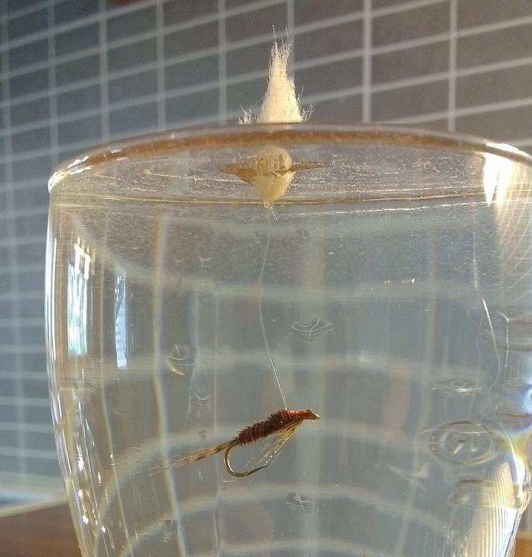 Perho tarvii hitusen painoitusta. Siis ihan hiiren verran. Muuten se vain jää roikkumaan miten sattuu ja ei ui hyvin. Yksi soiro lyijyä ja se olis siinä.
