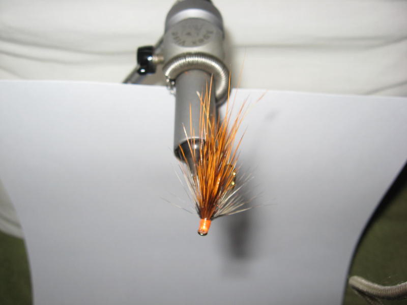 Siisti ja hyvin sidottu perus lohiperho, mutta kuva on vähän ylivalottunut. Häkilä saisi olla millin kaks lyhempi.