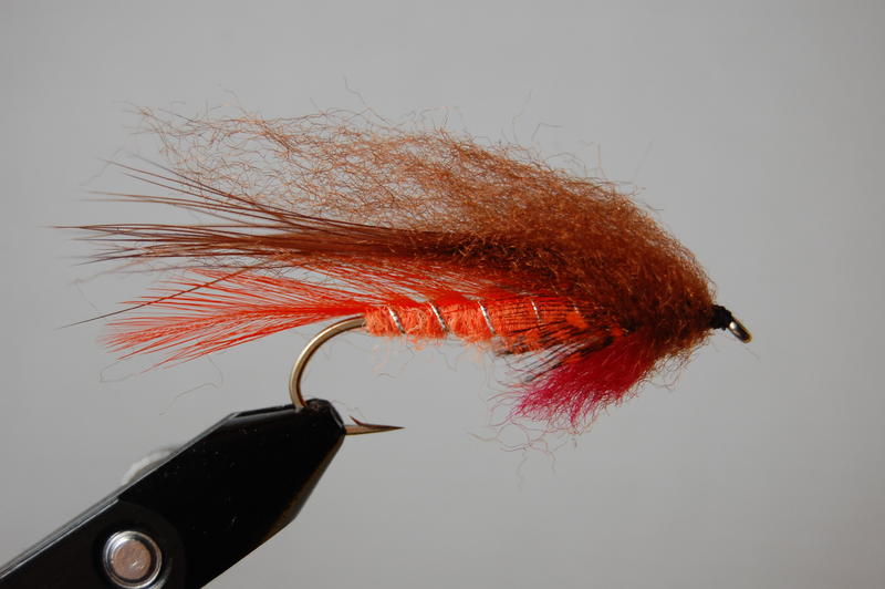 Perus oranssi ruskea streamer. Väriyhdistelmä kelpaa hyvin taimenelle.