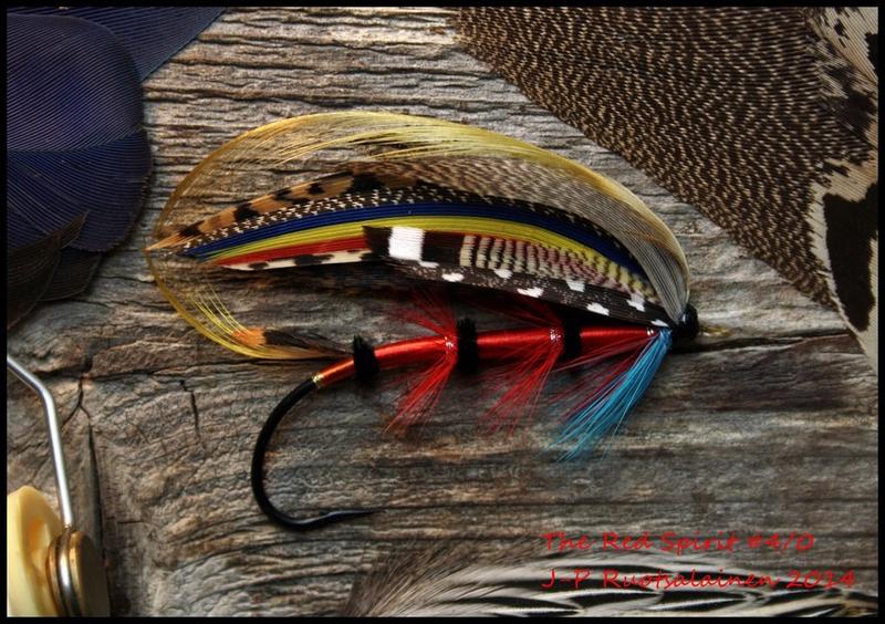 Kolmessa osassa. Pun. silkki+3 kierrosta soikea hopea+pun. kukko+musta strutsi