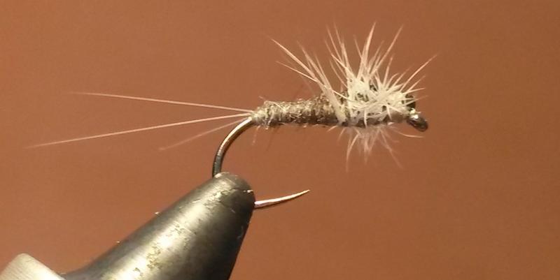 Kuollutta pientä päivänkorentoa imitoiva sidos. Nopea sidottava ainakin, en tiedä sitten mitä lapin jokien ja järvien asukit tuosta tykkäävät...