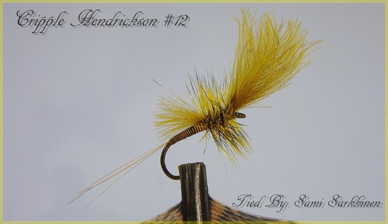 1. Sidotaan kyseisessä järjestyksessä. Ensin tulee etusiipi 2-3kpl, ja sitten pienempi taakse Siihen riittää 1-2cdc höyhentä, Kukko kiinni dubbaus ja päättelyhommiin!! Ja tietenki jos tekee tätä pienempään koukkuun riittää varmasti 1 cdc höyhen per siipi..