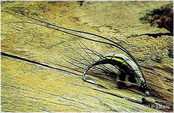 Viki: tämä perhomalli on ollut pariin in otteeseen PK-lehdessä ja tällä mallilla todellakin on saatu 4-kiloinen Kuusinkijoen taimen. Taimenta (pienempää 1-2kg) on saatu perholla muualtakin ja erityisesti harjusta, Juutuajoesta mm. 53cm, eilen viimeksi Kiiminkijoelta useita mittaharreja.
