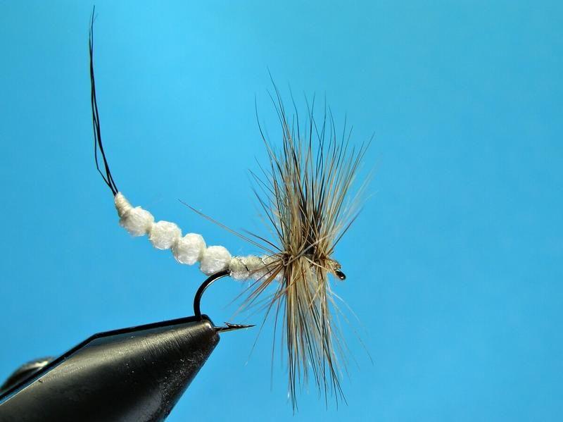 Aikuista päivyriä jäljittelevä sidos. Samantyylisen jatkoperän teko-ohjeet löytyvät Oliver Edwardsin kirjasta "Perhovaliot".