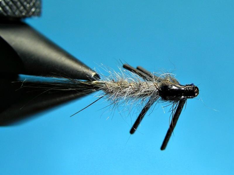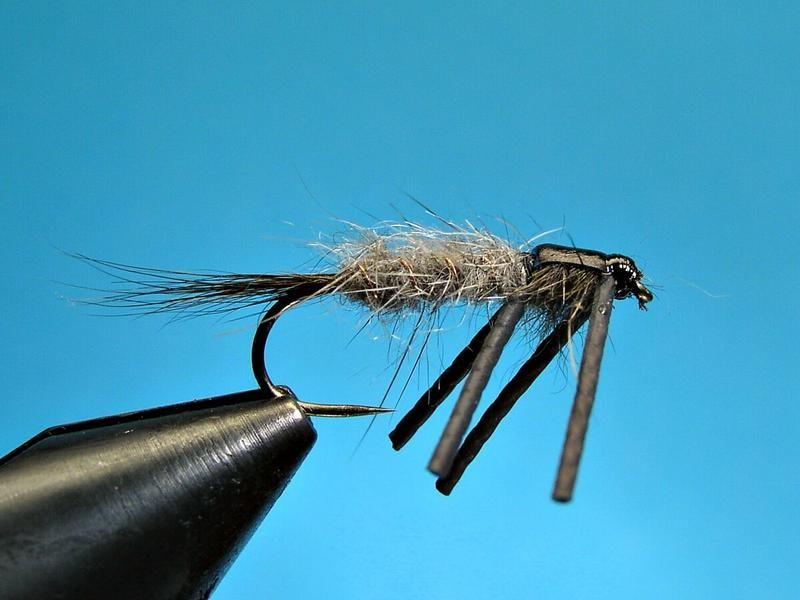 Muunnos perinteisestä hares ear-nymfistä. Kumijalat väreilevät uittaessa ja siten lisäävät runsaasti kalastavuutta. Kannattaa kokeilla!!