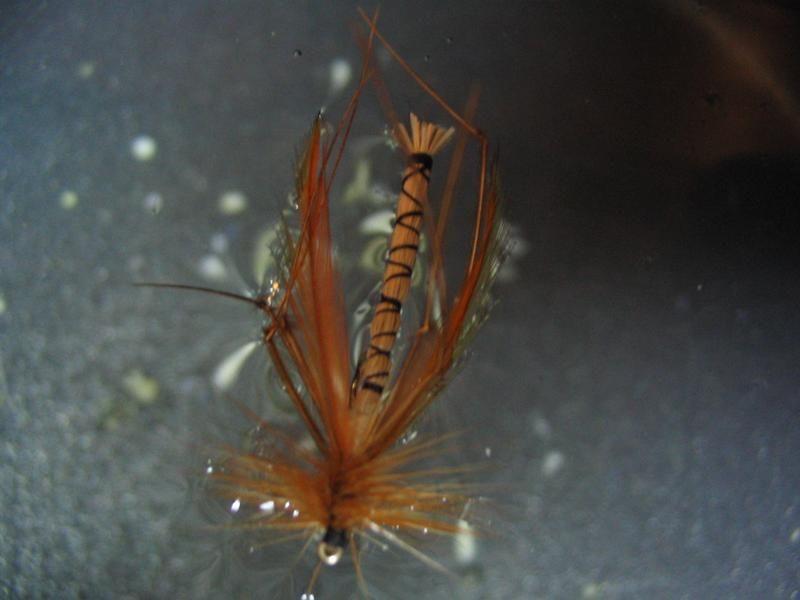 Neula ruuvipenkkiin kiinni, neulan ympärille karvoja, ja langalla päälle (kannattaa tehä pari erityistä kiristyskohtaa eli kiertää yhdessä kohdassa muutama kireä kierros). Lopuks vaan neula veks ja sidotaan derä kiinni koukkuun...