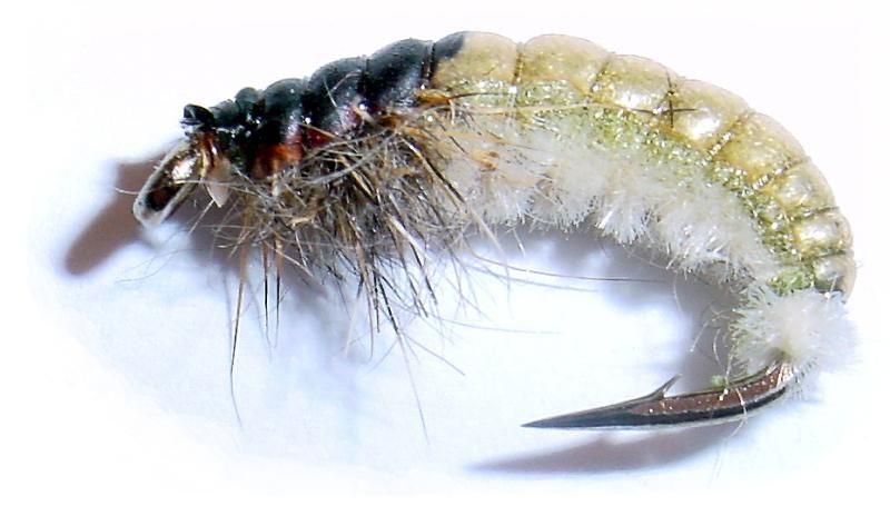 Ihan kalastava sidos ollut ja hieman helpotettu muutamasta muusta yleisestä hieman "realistisemmasta" larvamallista. Selkäkilpi voisi olla vähän tummempi, niin perho jäljittelisi paremmin larvan tummempaa selkää ja selkeästi harmahtavanvaaleanoliivia kylkeä/vatsaa. Kiduksen on ehkä hieman liioitellut, mutta larvalla ne erottuvat todella selkeästi ja chenillestä ne on helppo sitoa.