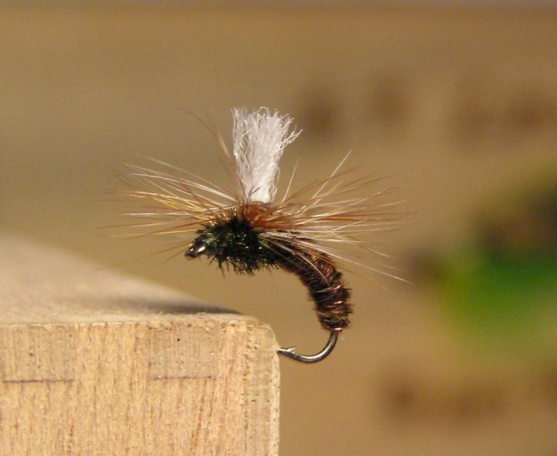 Häkilä on 3# niskasta. Varsin pätevää tavaraa laskuvarjohäkiläksi. Laskuvarjohäkiläisten perhojen yksi parhaimmista eduista on että häkilä materiaalin ei tarvitse olla ensiluokkaista toimiakseen hienosti. Jopa vähen jäykempi siikasinen kiinalainen niskakin ajaa asiansa oikein hyvin.