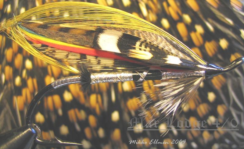 Tällä siipikokoonpanolla kovan virran heittokalastukseen alkukesästä. Amherstin käyttö alussiipenä tippetin sijaan on alkuperäinen tyyli, kun taas väriraidat ovat myöhempää perua.