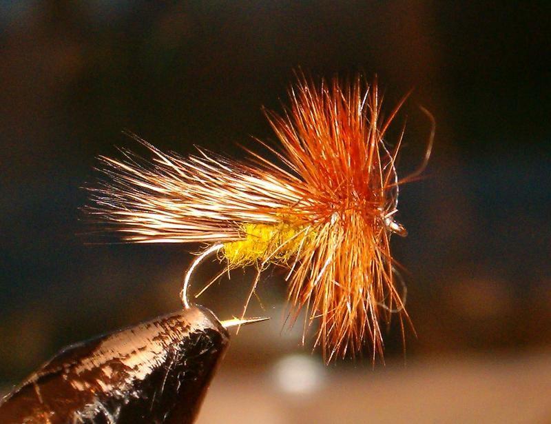 Suosittelen muuten ko. perhon käsittelyä suoraan sidontapenkissä silikonispreillä, niin ei tarvitse pilata hyvää hahmoa geeleillä tms. sitten rannalla.