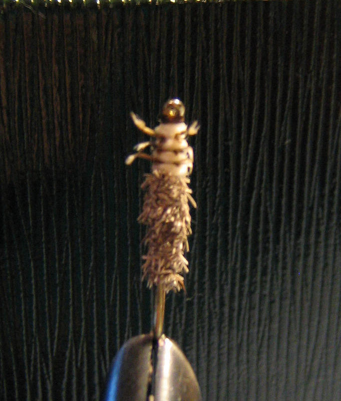 Helposti sidottava, mutta näyttävä/realistinen sidos ajelehtivasta, kopallisesta vesiperhosen larvasta. Pelittää parhaiten pohjan lähellä.