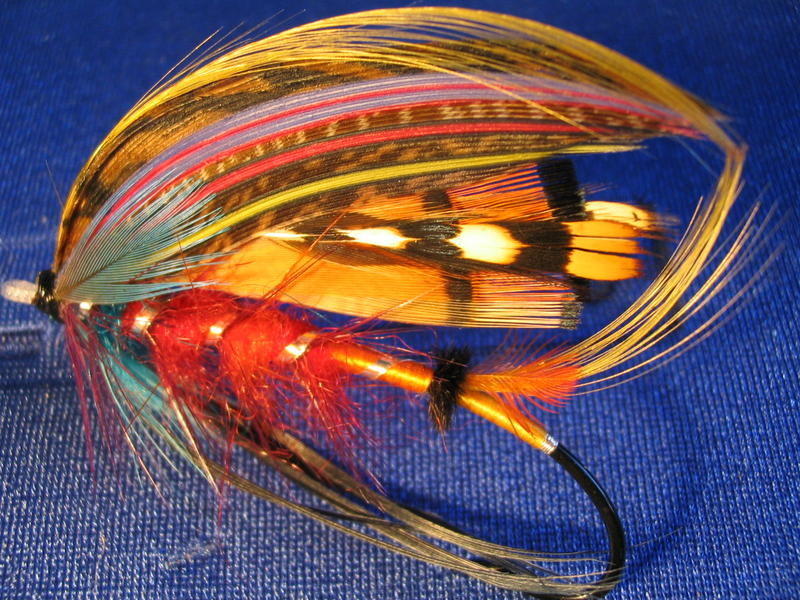 Mestarillinen taidonnäyte, sitojan taidot klassisen lohiperhon sidonnassa huimat. Tällainen kuvakulma voi tuoda esiin myös perhon rakennetta, esim. pyrstön intianvaris-jäljitelmän kiinnitys.