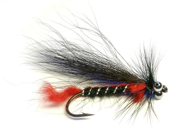 Eipä tämä poikkea alkuperäisestä juuri mitenkään. Silmät taitavat originaalin reseptissä olla koukun yläpuolella, jolloin perhon päästä tulee ehkä "siistimpi". Niin ja runko on reseptissä muistaakseni mustaa villaa.