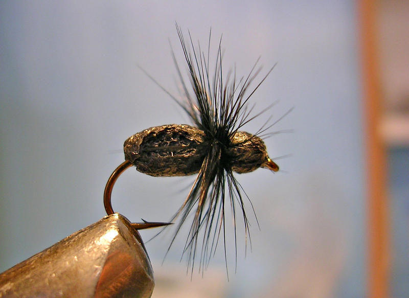 Coppana toimii parhaiten harjukselle, mutta kai muillekin kaloille... Vaikka perhon pitäisi jäljitellä jotain kovakuoriaista, saattaa kala luulla sitä myös hämähäkiksi...