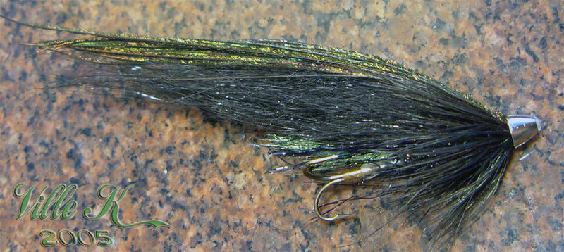 Musta tuuhea kana tai pehmeä kukko (schlappen), sidotaan ennen viimeistä kettunippua