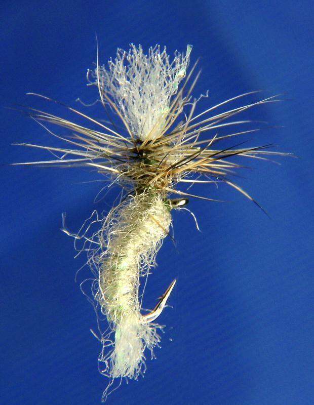 Laskuvarjohäkilä on todellakin sidottu tavanomaista ylemmäs siiven tyveen. Tämä on se toinen perhon pointti - jäljittelee pintakalvossa olevaa sääsken pupaa hyvin ja tartuttaa kalan paremmin. Siiven tyvi on normaaliin tapaan jäykistetty sidontalangalla, jonka jälkeen häkilä on kierretty ylhäältä alaspäin, muttei aivan alas asti! Tyveen on sitten vielä dubattu hieman jänön korvakarvaa ja nypitty esiin. Häkilästä kannattaa tehdä hieman pitkähkö ja harvahko - kelluu ja kalastaa paremmin.
